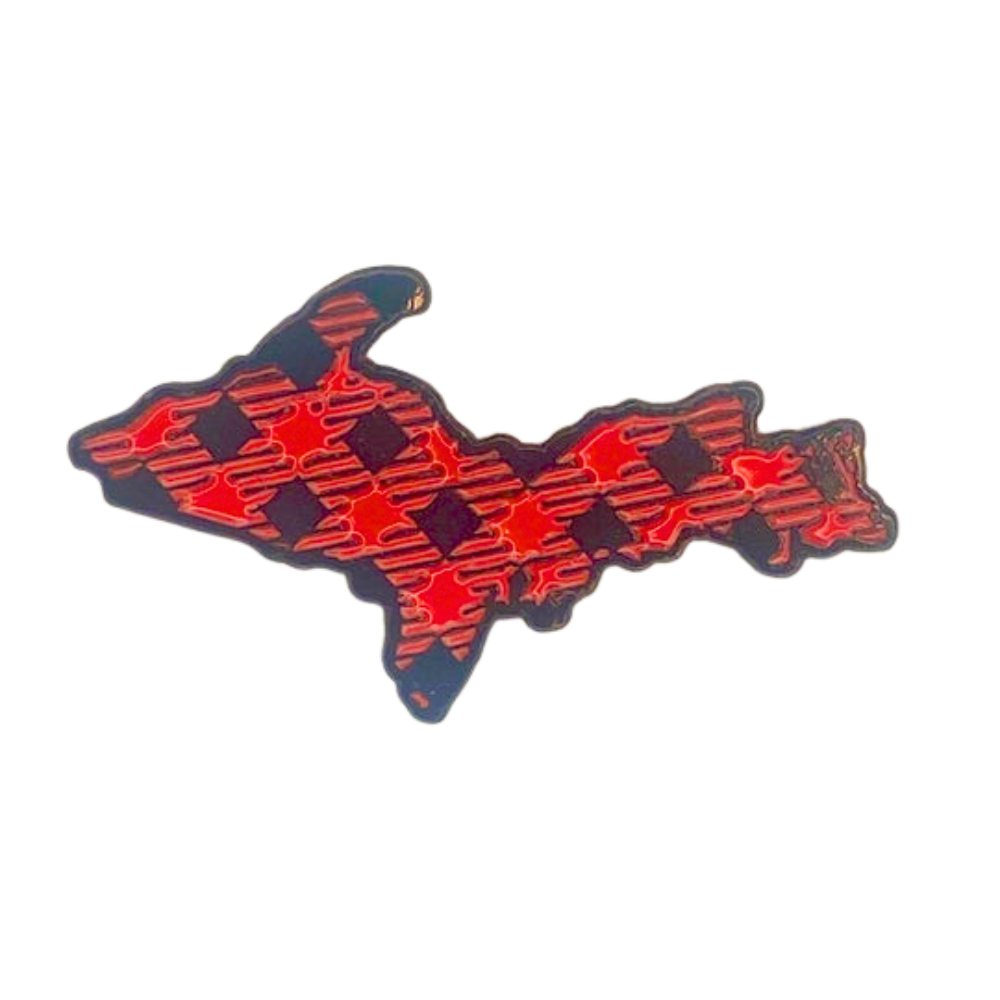 This charming cloisonne pin celebrates Michigan's beloved Upper Peninsula! Crafted with vibrant enamel details and a gleaming finish, it's the perfect way to show your U.P. pride. Pin it on your backpack, jacket, or hat for a playful pop of Great Lakes style. A must-have treasure for Yoopers and U.P. enthusiasts alike!