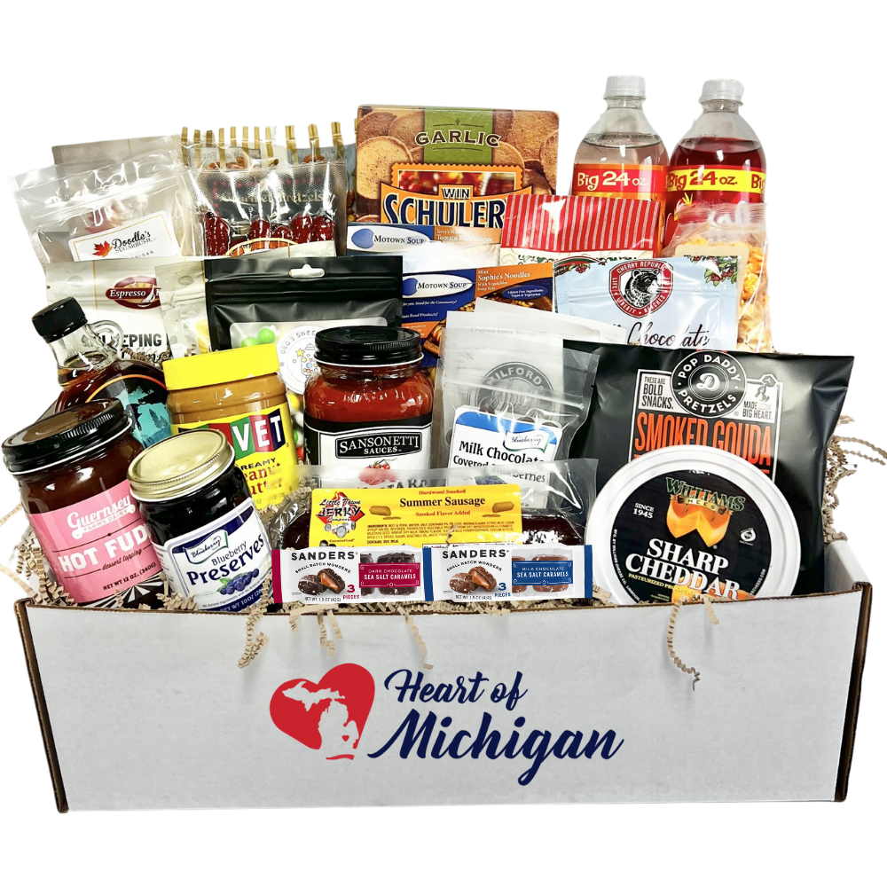 The Taste of Michigan Gift Box has a little bit of everything Michigan. These pre-selected items are the perfect gift to try out twenty-eight of the best from the Great Lakes State. From snacks to meal items, this gift box has it all!
