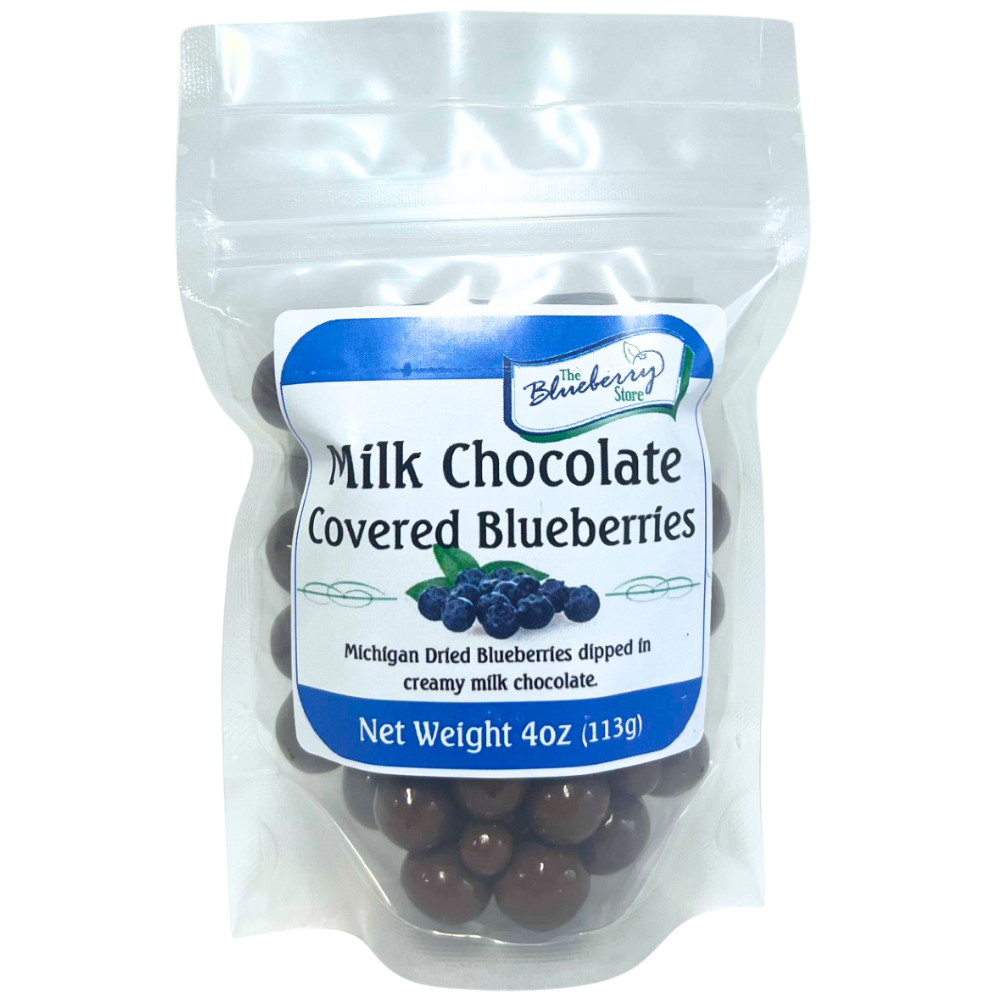 Milk Chocolate Ingredients: Milk Chocolate (Sugar, Cocoa Butter, Milk, Chocolate Liquor, Soy Lecithin (an emulsifier), Vanillin (Artificial Flavor), Dried Blueberries (Blueberries, Sugar, Sunflower Oil), Gum Arabic, Corn Syrup, Confectioners Glaze (Lac Resin).