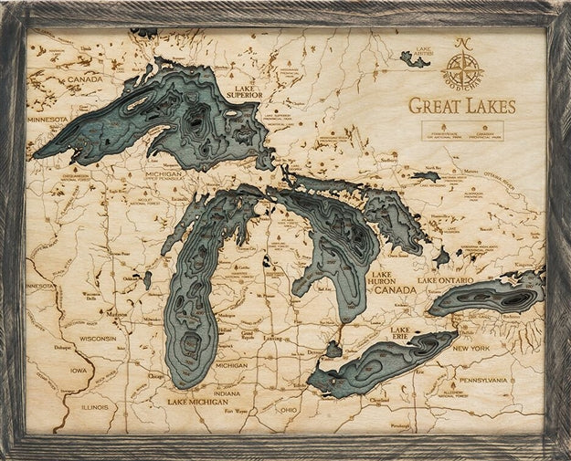 Great Lakes 3-D Nautical Wood Chart 24.5"x31"