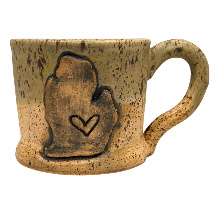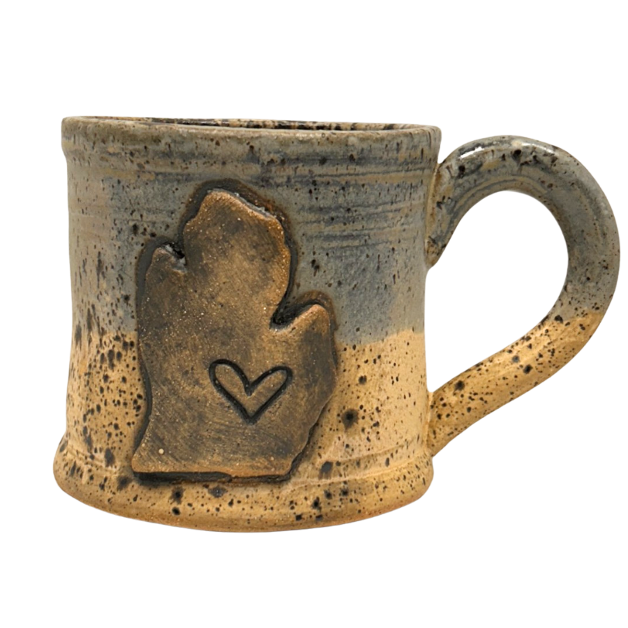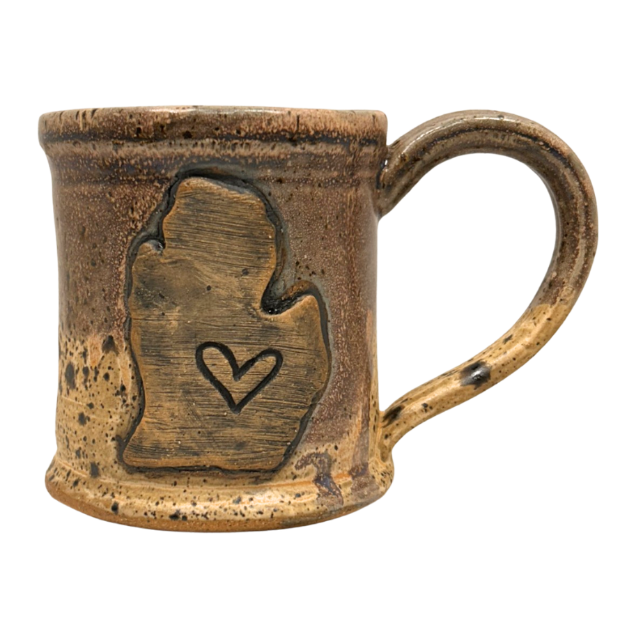 Discover the charm of Michigan craftsmanship with these handmade pottery mugs. Each mug is uniquely crafted, ensuring no two are exactly alike. Perfect for enjoying your favorite hot beverages, these mugs combine artistry with functionality, adding a distinctive touch to your daily routine.