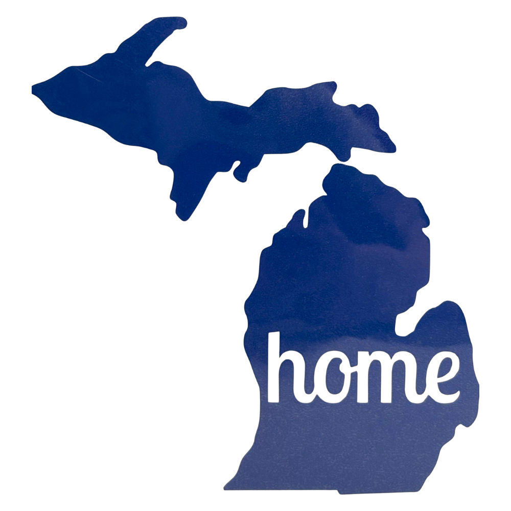 Michigan silhouette with "home" script.