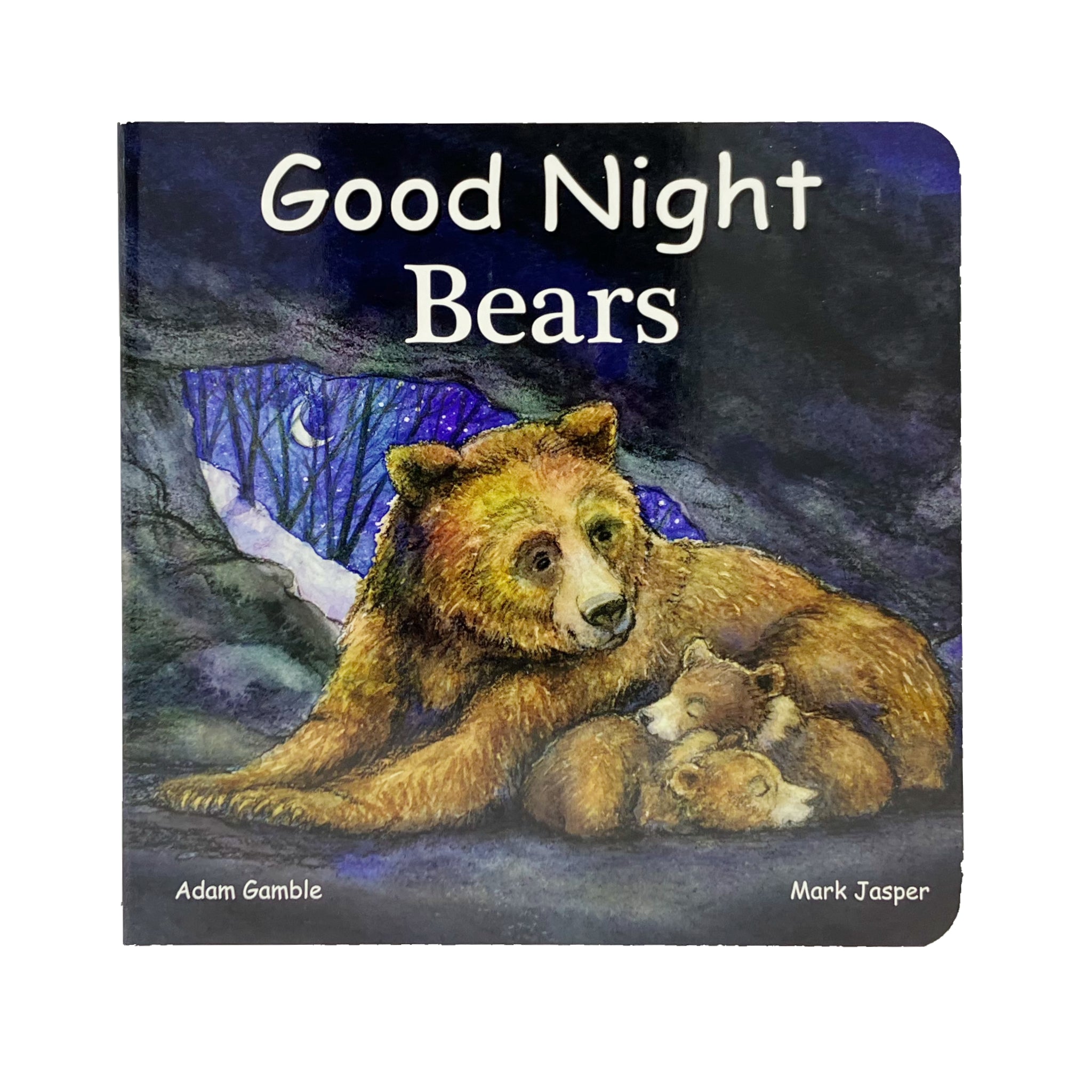 Good Night Bears highlights black bears, polar bears, grizzly bears, panda bears, sloth bears, sun bears, spectacled bears, bear cubs, bear habitats, bear tracks, catching salmon, and more. This charming and educational board book takes young readers into the fascinating world of bears while exploring bear species and types of bear habitat. A must-read for young wildlife enthusiasts.
