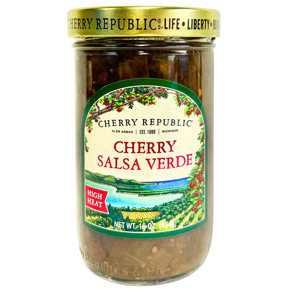 Verde Cherry Salsa: High Heat. This spicy tomatillo and jalapeno salsa includes the perfect hint of sweetness from Michigan cherries.
