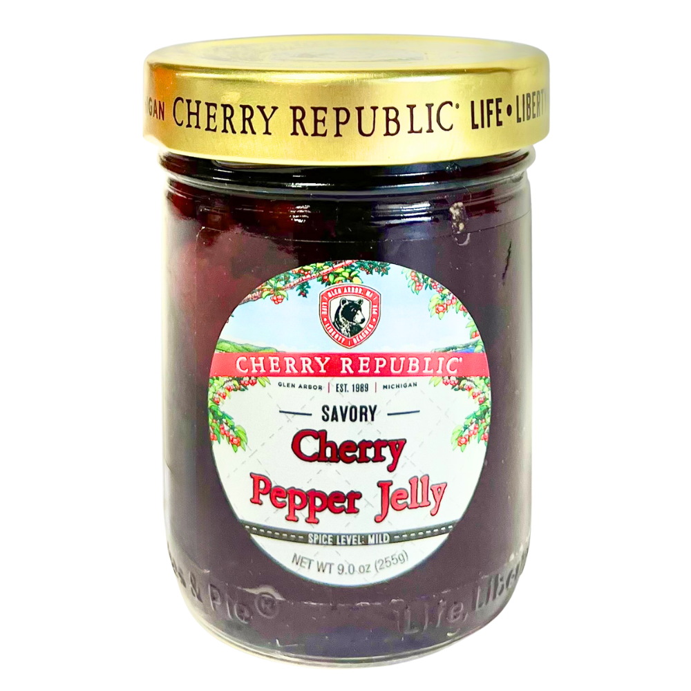Hot and mild pepper stirred into Cherry Republic's delectable Cherry Jam to create Cherry Pepper Jelly. Served with brie, cream cheese, or as a dip, you'll add color, zip, and the marvelous flavor of cherries to your hors d'oeuvres.