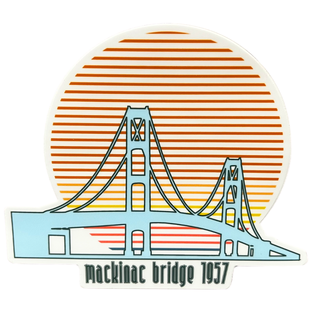Take a piece of Michigan with you wherever you go with our Mackinac Bridge 1957 Decal! Made from high quality vinyl, this 5" decal is a perfect reminder of the beautiful Mackinac Bridge (and also makes for a great conversation starter). Proudly produced in Michigan.