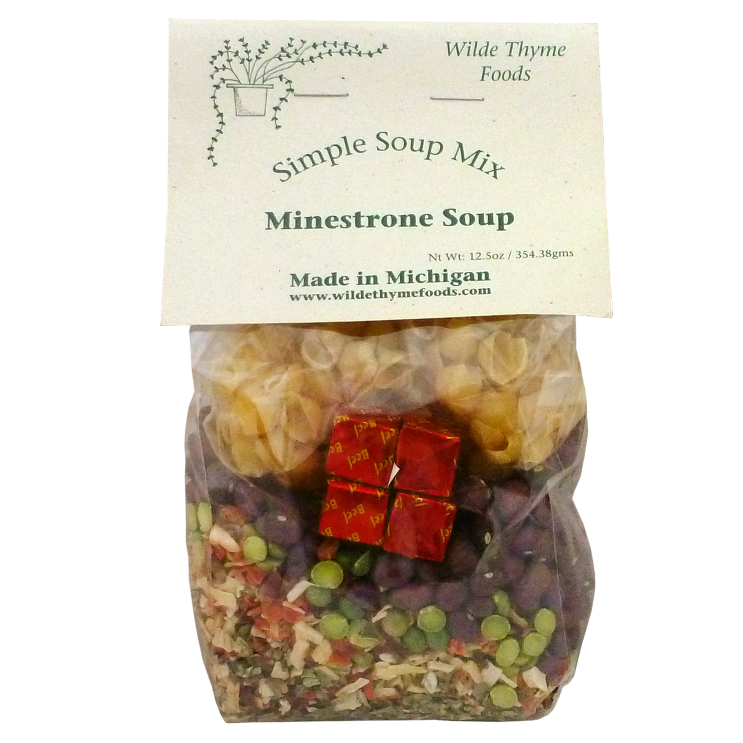 This traditional Italian soup combines red beans, split peas, vegetables, and pasta. This mix makes a large pot of soup by adding 10 cups of water and a 28 oz. can of tomatoes. Delicious as is or with 1 lb. of cooked Italian sausage or ground beef. Makes approximately fifteen 1-cup servings.
