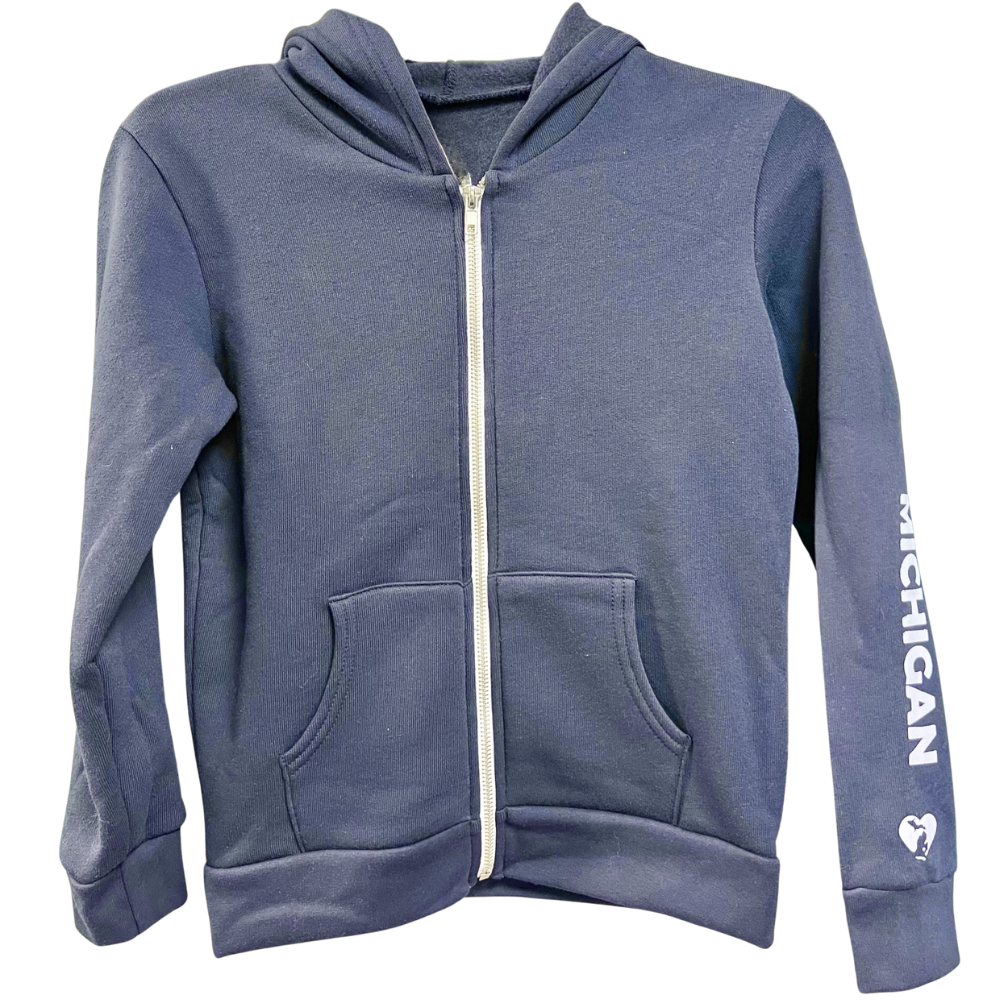 This comfortable youth zip up hoodie features a cute Heart of Michigan logo on the left sleeve.