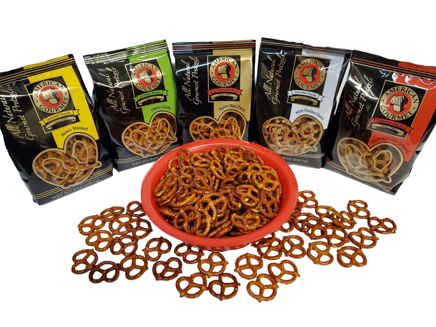 American Gourmet Mini Pretzel Twists are the only pretzels that they say melt in your mouth. American Gourmet has spent the last 30 years perfecting American Gourmet Mini Pretzel Twists to bring to you an original gourmet pretzel with quality in its highest regard. American Gourmet uses all-natural ingredients and a process so unique it was patented. The formulated process gives the pretzels their "addictive" flavor, making them unparalleled compared to any others available today!