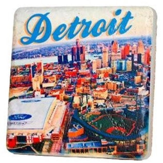 Handmade using one of a kind Italian tumbled stone with natural cork backing. P