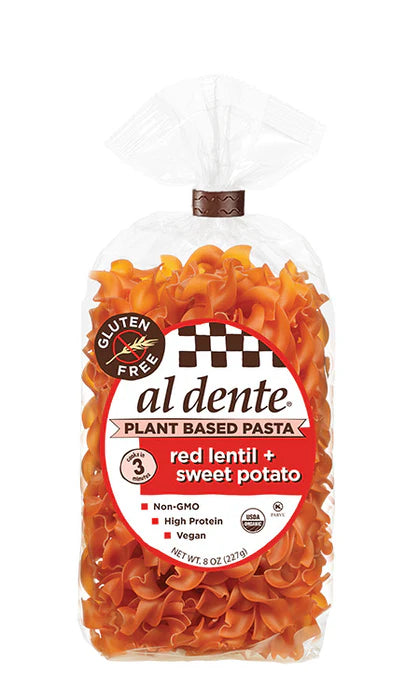 Al Dente's Red Lentil & Sweet Potato pasta is a delicious and healthy vegan option that's perfect for anyone looking for a nutritious meal. Trust us, this pasta is a real game-changer! With its nutrient-packed ingredients and delicious flavor, you'll be left feeling satisfied.