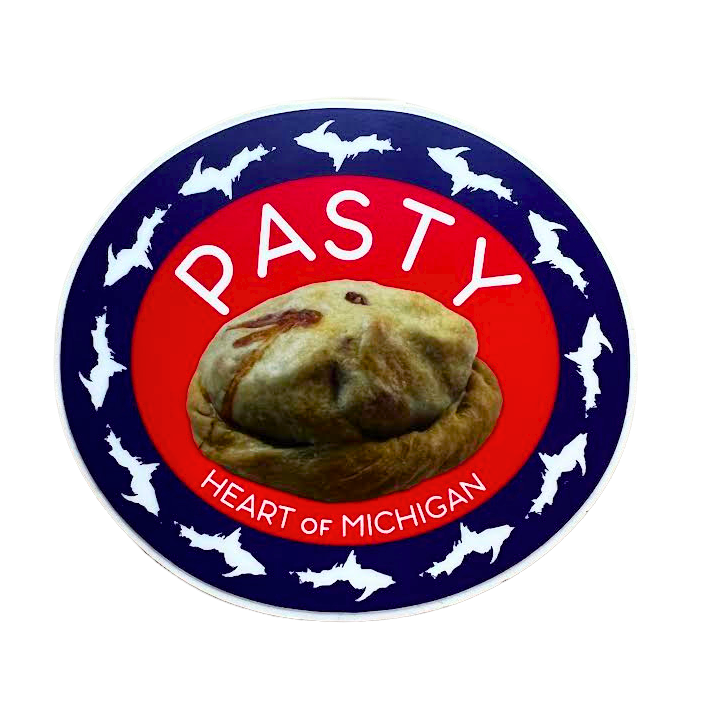 Show off your pasty pride with this decal featuring a Heart of Michigan pasty!