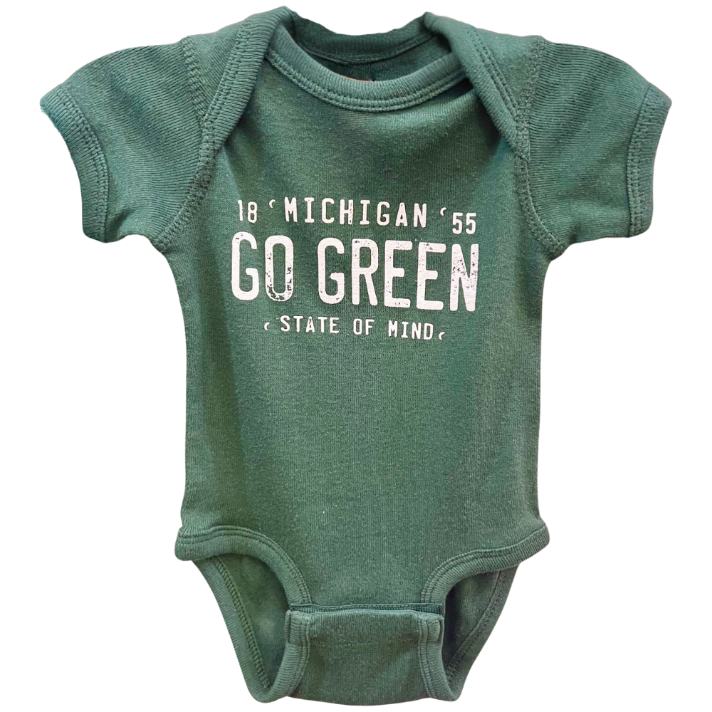 The Go Green Onesie is designed for ultimate comfort, perfect for any little one. Featuring the iconic MSU Spartans logo, this onesie is both stylish and practical. Made with high-quality materials and designed for maximum comfort, your little one can show off their team spirit while staying cozy.