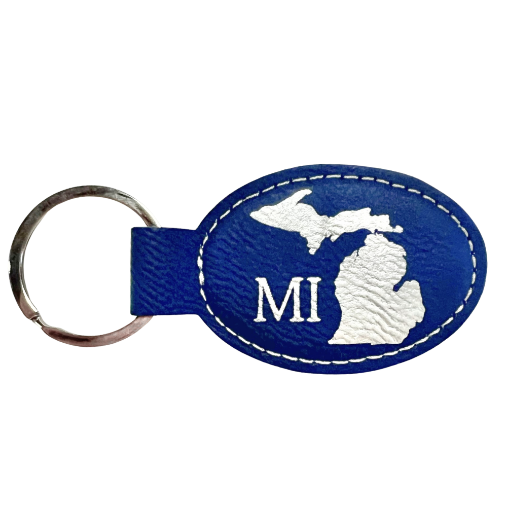Keep your keys stylishly in check with this fun blue leather oval keychain, featuring a shiny silver Michigan silhouette. It’s the perfect little reminder of the Great Lakes State wherever you go—durable, cute, and ready to tag along on all your adventures!
