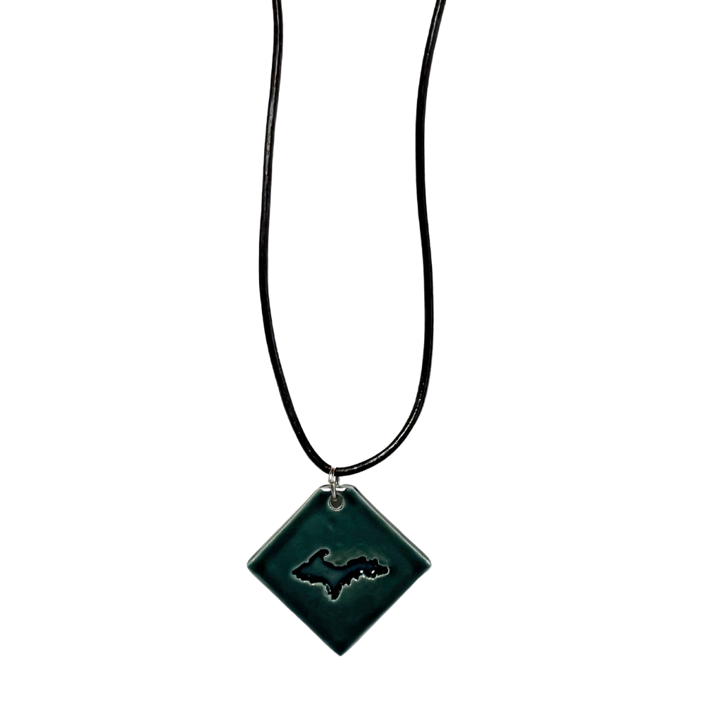 18" cord, pottery tile pendant with Michigan's Upper Peninsula on the front.