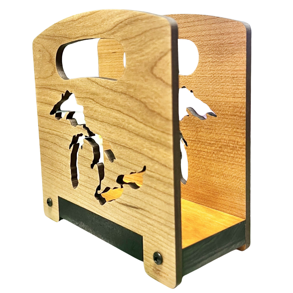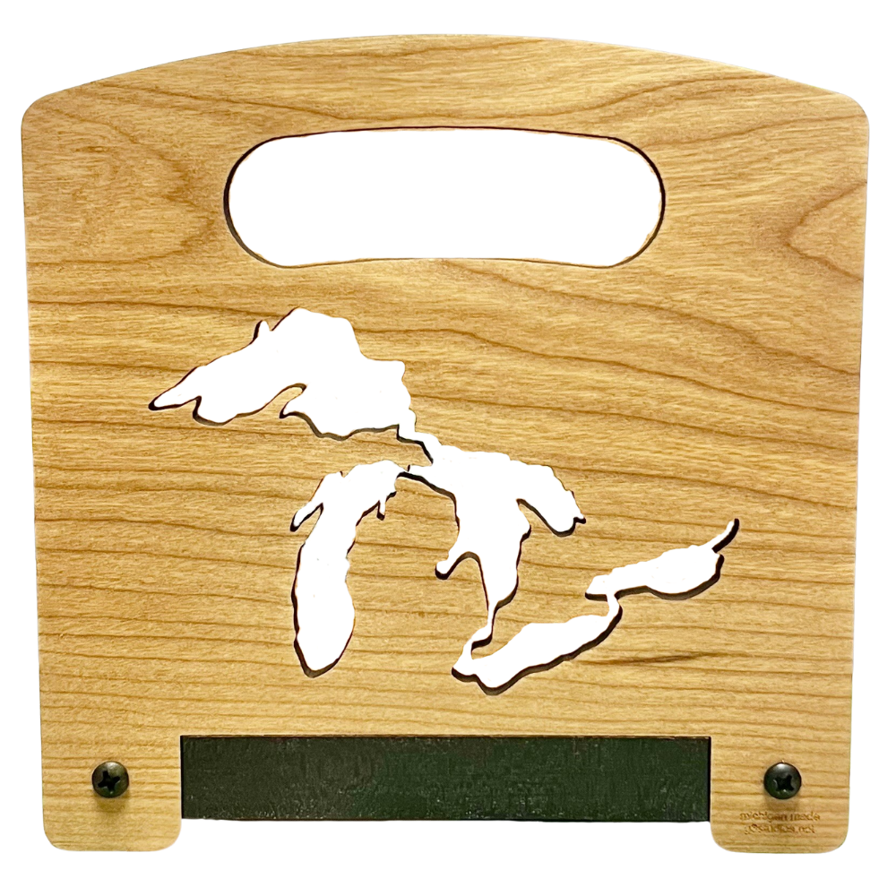 Crafted from premium natural wood, this Great Lakes Napkin Holder combines functionality with regional pride. The sustainable hardwood construction showcases natural grain patterns that make each piece unique. Designed to prevent napkins from blowing away while adding a sophisticated touch to your dining table or outdoor gathering. A practical yet elegant addition to any Michigan-themed home décor collection.