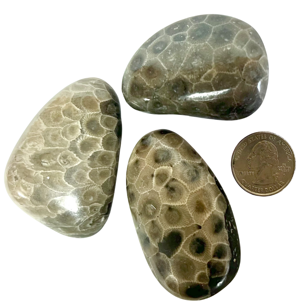 Discover the unique beauty of Petoskey Stones, Michigan's state stone found only in the upper peninsula. These polished stones are fossilized coral, showcasing mesmerizing patterns. Bring home a piece of natural history with your very own Petoskey Stone.