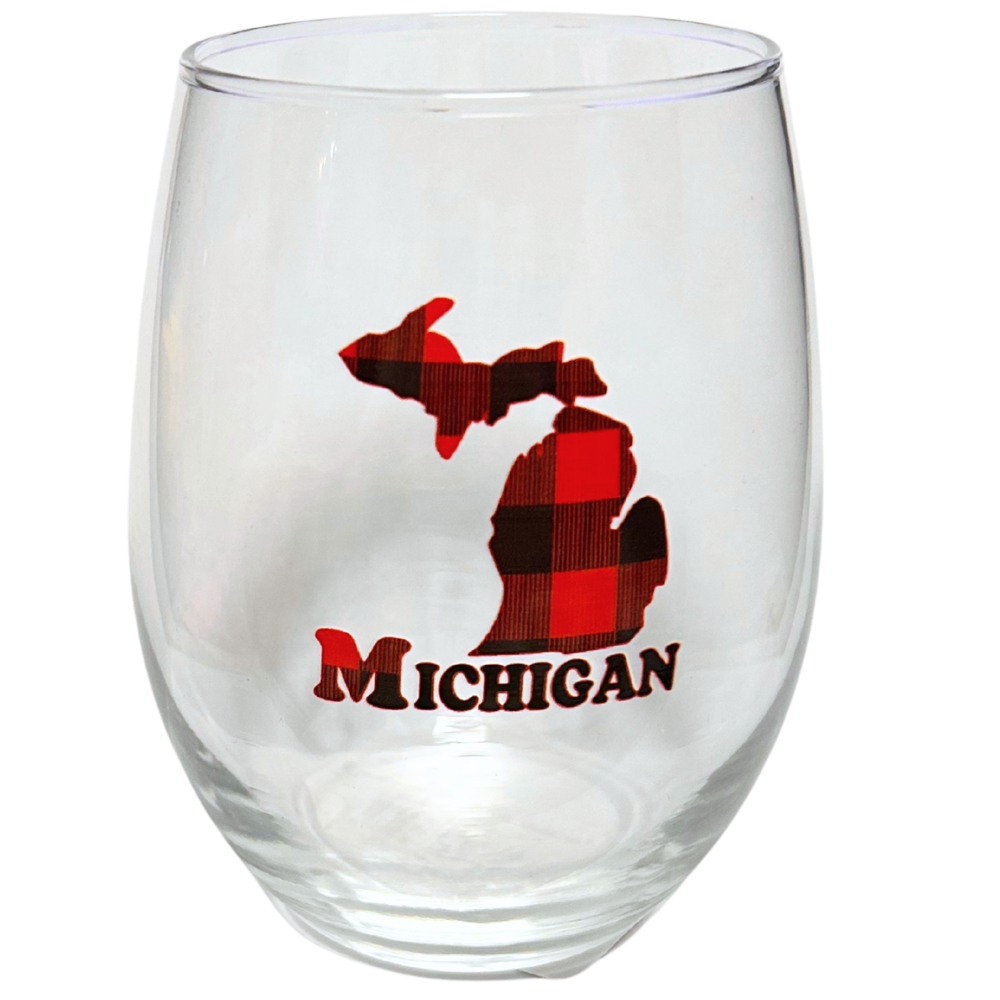Plaid Michigan Stemless Wine Glass - is backordered and will ship as soon as it is back in stock.