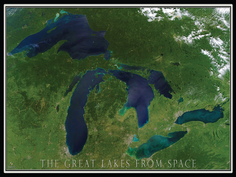 The Moderate Resolution Imaging Spectroradiometer (MODIS) on NASA’s Aqua satellite captured this scene at 1:30 p.m. Central Daylight Time on August 28, 2010. The scene depicts a truly rare cloud-free morning with all of the lakes visible at once