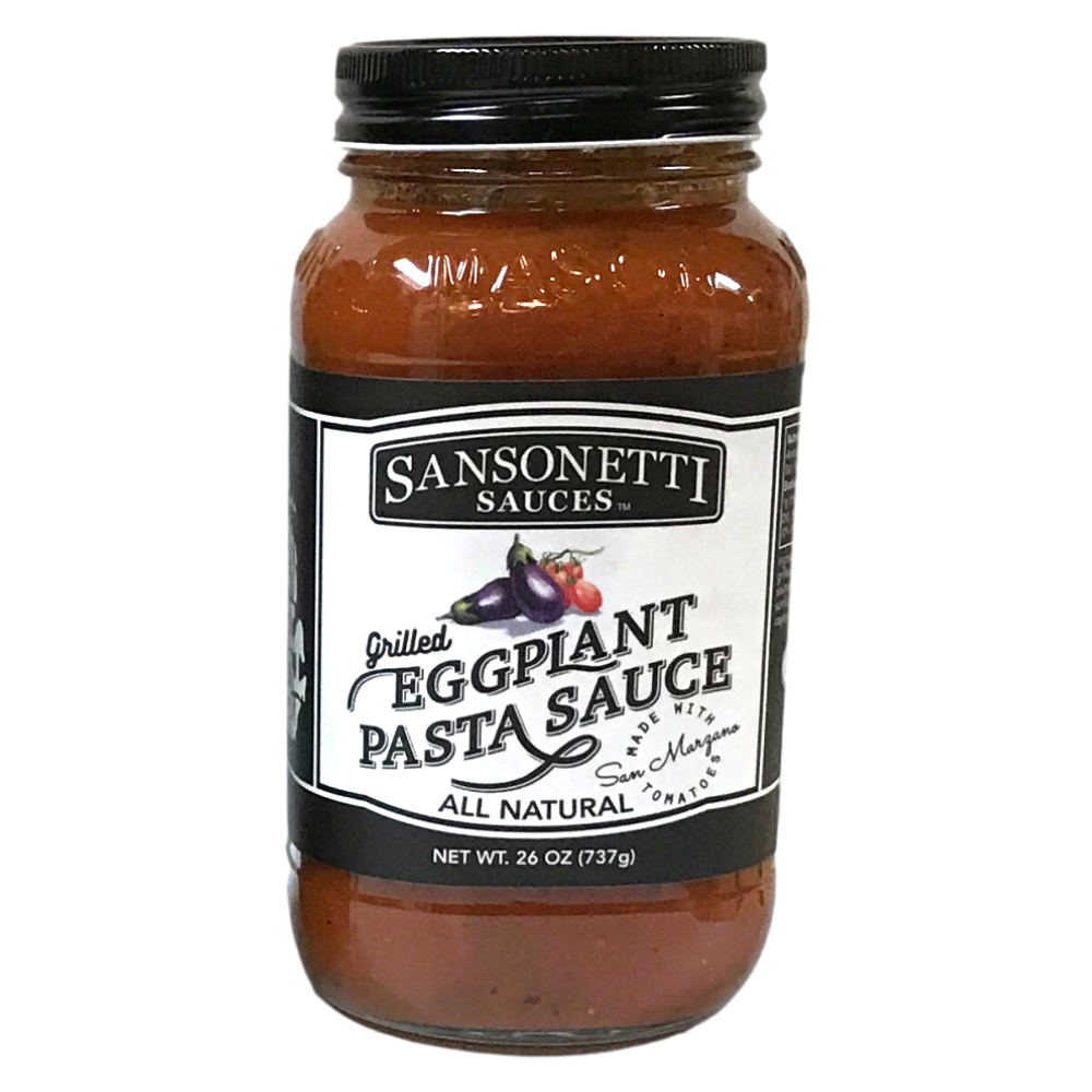 Grilled eggplant added to San Marzano tomatoes, sautéed garlic and fresh basil gives this sauce an uniquely rich and delicious flavor. Serve over any pasta, excellent with Eggplant Parmesan.