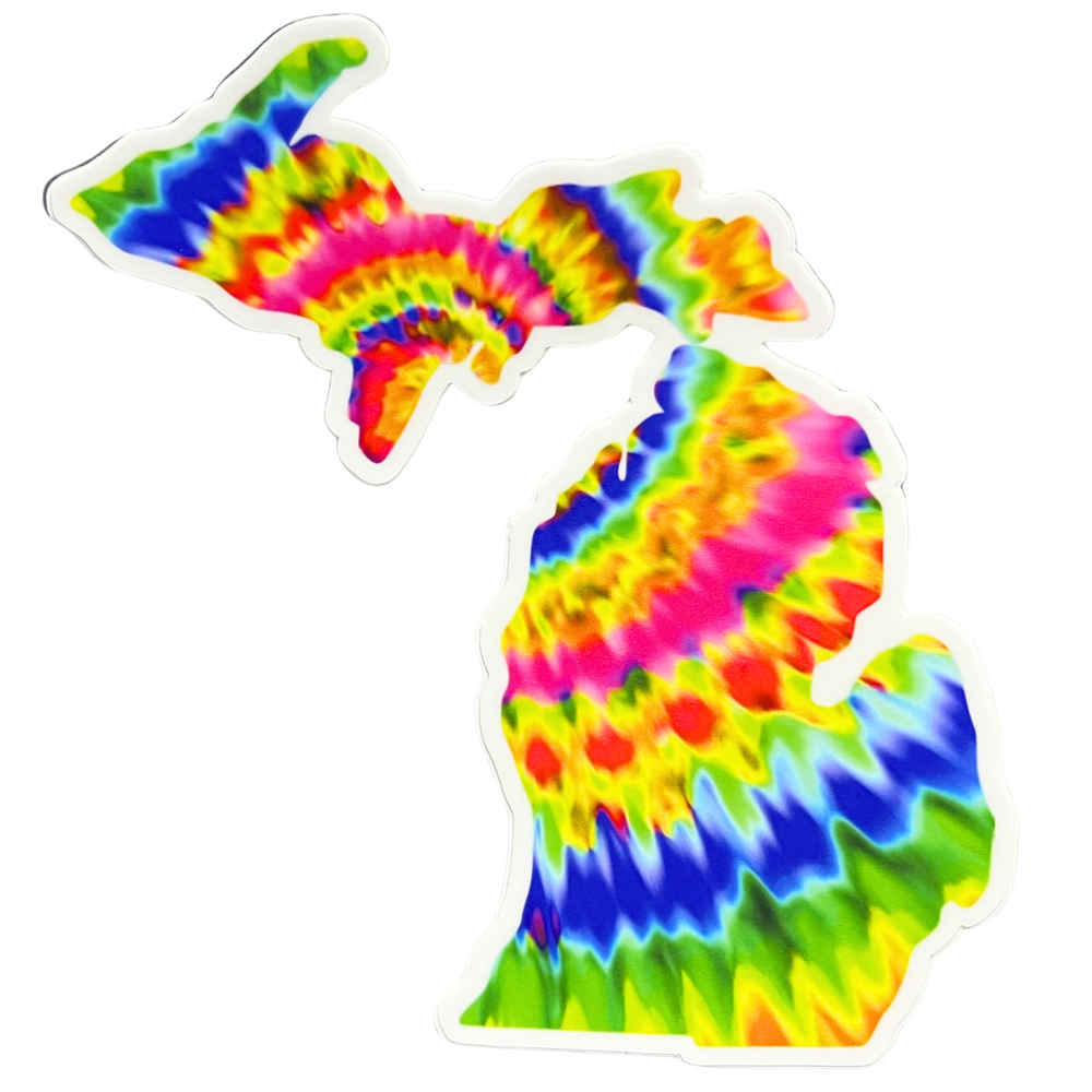 Expertly crafted in the heart of Michigan, this 5" Tie Dye Michigan Decal boasts high quality vinyl for lasting durability. Show off your love for the Great Lakes State with this unique and eye-catching design. Perfect for any car, laptop, or water bottle.